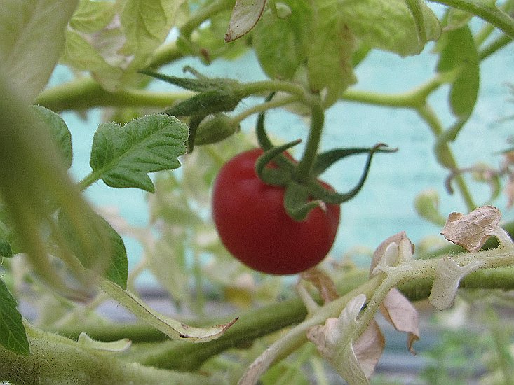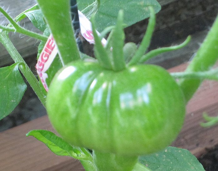 Here is a close up of the first tomato to turn red, taken on June 11th.