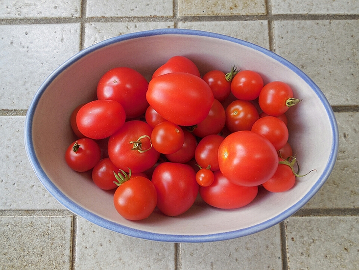 A bowl of freshly picked tomatoes... mmmm, they are so sweet and delicious!
